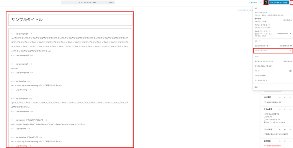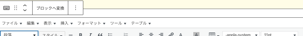 以降の編集作業でバトンタッチする際にエラーが生じるので、全文ざっと見渡してブロックへ変換をクリックしてください。