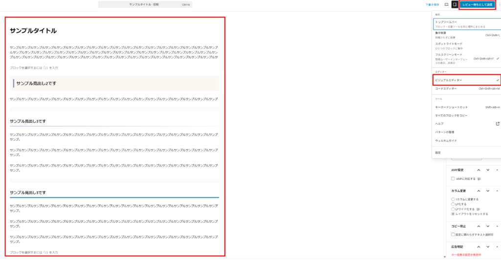 再度上記の手順で、今度はビジュアルエディターに戻します。